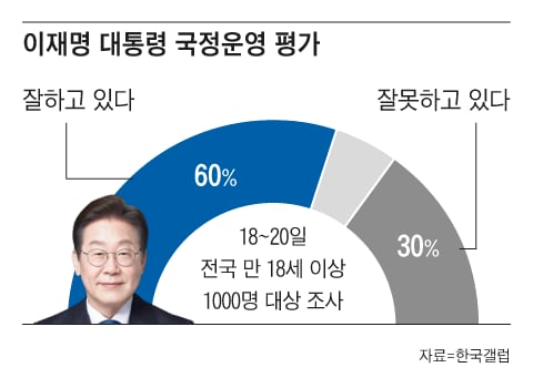 A survey on public opinion revealed that President Lee Jae-myung’s approval rating for his state affairs increased by 1 percentage point compared to the previous week, reaching 60% on the 21st.